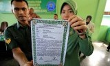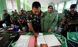 Anggota TNI AD bersama istri menandatangani pakta Integritas Bebas Narkoba di Makorem 011 Lila Wangsa, Lhokseumawe, Provinsi Aceh, Selasa (17/5). (Antara/Rahmad)
