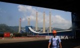 Pekerja melintas di kawasan Unit Pembangkit (UT) Suralaya, Cilegon, Banten, Kamis (19/5). (Republika/Agung Supriyanto) (FOTO : Republika/Agung Supriyanto)