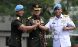 Panglima TNI Jenderal Gatot Nurmantyo (tengah) diapit Komandan Paspampres Brigjen TNI (Mar) Bambang Suswantono (kanan) dan Mayjen TNI Andika Perkasa di Markas Komando Paspampres, Tanah Abang, Rabu (25/5).(Republika/Wihdan) (FOTO : Republika/ Wihdan)