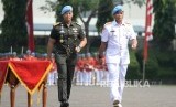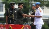Sertijab Komandan Paspampres. (dari kiri) Mayjen TNI Andika Perkasa dan Komandan Paspampres Brigjen TNI (Mar) Bambang Suswantono saat Upacara Serah Terima Jabatan di Markas Komando Paspampres, Tanah Abang, Jakarta, Rabu (25/5).(Republika/Wihdan) (FOTO : Republika/ Wihdan)