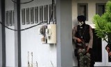 REPUBLIKA.CO.ID, GORONTALO -- Petugas kepolisian bersiaga saat terjadi kerusuhan di Lembaga Pemasyarakatan (Lapas) Kelas II A Gorontalo, Rabu (1/6).