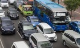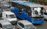 REPUBLIKA.CO.ID, JAKARTA -- Sebuah bus bekas Angkutan Perbatasan Terintegrasi Busway atau APTB jurusan Tanah Abang - Bekasi melintas di lajur arteri Jalan Sudirman, Jakarta, Rabu (1/6).