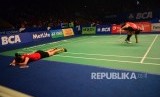 Pasangan Indonesia takluk oleh pasangan Nedherland dengan skor akhir 21-10, 22-24, 23-25.