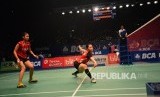 REPUBLIKA.CO.ID, JAKARTA -- Pasangan Ganda Putri Pebulutangkis Indonesia Tiara Rosalia Nuraidah dan Rizki Amelia Pradipta berusaha mengembalokan kok saat melawan pasangan Nedherland Eefje Muskens dan Selena Piek dalam BCA Indonesia Open Series 2016 di Istora Senayan, Jakarta, Jumat (3/6).