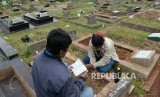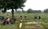 REPUBLIKA.CO.ID, JAKARTA -- Jelang bulan suci Ramadhan, para peziarah memanjatkan doa untuk anggota keluarga mereka yang telah meninggal dunia di TPU Karet Bivak, Jakarta, Ahad (5/6).