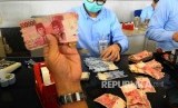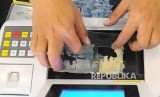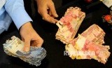Petugas mengecek kondisi uang rusak yang ditukarkan oleh warga di Bank Indonesia, Jakarta, Senin (6/6).(Republika/Agung Supriyanto) (FOTO : Republika/Agung Supriyanto)