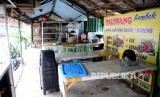 Warung makan yang masih tetap buka, menutup ruang makan menggunakan banner atau kain gordyn untuk menghormati umat Muslim yang berpuasa.