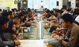 Masyarakat menikmati tajil saat berbuka puasa di Masjid Raya Bandung, Selasa (7/6). (Republika/Edi Yusuf) (FOTO : Republika/Edi Yusuf)