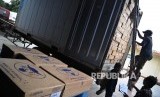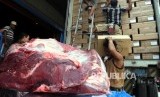 REPUBLIKA.CO.ID, JAKARTA -- Pekerja sedang melakukan bongkar muatan daging sapi impor di gudang Bulog, Jakarta, Kamis (9/6).