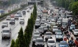 Kemacetan mulai terlihat di jalan protokol Ibu Kota dan di beberapa titik di wilayah Jakarta menjelang waktu berbuka puasa.