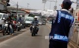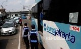 REPUBLIKA.CO.ID, JAKARTA -- Petugas Dishub DKI Jakarta melakukan sterilisasi jalur Transjakarta koridor V di kawasan Kampung Melayu-Matraman, Jakarta Timur, Senin (13/6).