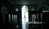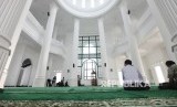 Masuk ke dalam ruang ibadah utama, lantai masjidnya menggunakan marmer abu. (FOTO : Republika/Rahmawaty La'lang)