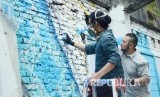 Membuat seni mural di sekitar masjid pada ngabuburit bareng bertajuk Ride and Fasting oleh Shift Pemuda Hijrah, di halaman Masjid Al Lathiif, Jl Saniten, Kota Bandung, Ahad (26/6). (Republika/Edi Yusuf)