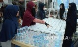 Persiapan buka puasa bersama pada acara ngabuburit bareng bertajuk Ride and Fasting oleh Shift Pemuda Hijrah, di halaman Masjid Al Lathiif, Jl Saniten, Kota Bandung, Ahad (26/6). (Republika/Edi Yusuf)