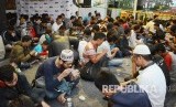 Buka puasa bersama usai ngabuburit bareng bertajuk Ride and Fasting oleh Shift Pemuda Hijrah, di halaman Masjid Al Lathiif, Jl Saniten, Kota Bandung, Ahad (26/6). (Republika/Edi Yusuf)