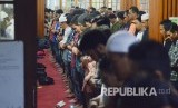 Shalat magrib berjamaah usai ngabuburit bareng bertajuk Ride and Fasting oleh Shift Pemuda Hijrah, di halaman Masjid Al Lathiif, Jl Saniten, Kota Bandung, Ahad (26/6). (Republika/Edi Yusuf)