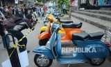 Pentas motor Vespa pada ngabuburit bareng bertajuk 'Ride and Fasting' oleh Shift Pemuda Hijrah, di halaman Masjid Al Lathiif, Jl Saniten, Kota Bandung, Ahad (26/6). (Republika/Edi Yusuf) (FOTO : Republika/Edi Yusuf)