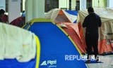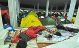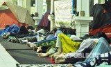Puluhan masyarakat datang mendirikan tenda di serambi masjid dan melakukan iktikaf bersama-sama.