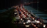 Kendaraan pemudik terjebak macet panjang menuju pintu keluar Tol Brebes Timur, Brebes, Jawa Tengah , Jumat (1/7).(Republika/Wihdan Hidayat) (FOTO : Republika/Wildan Hidayat)