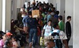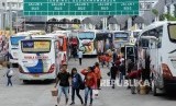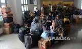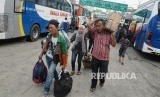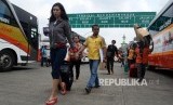 REPUBLIKA.CO.ID, Sejumlah pemudik membawa barang bawaan yang akan menaiki bus di Terminal Rawamangun, Jakarta Timur, Ahad (3/7).