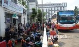 Sejumlah pemudik menunggu bus di Terminal Rawamangun, Jakarta Timur, Ahad (3/7). (Republika/Yasin Habibi) (FOTO : Republika/Yasin Habibi)