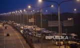 Kepadatan arus kendaraan saat keluar dari kendaraan saat macet total di Tol Kanci-Pejagan, Jawa Tengah, Ahad (3/7).