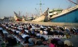 REPUBLIKA.CO.ID,JAKARTA -- Umat Muslim melaksanakan shalat Idul Fitri 1437 Hijriah di halaman Pelabuhan Sunda Kelapa, Jakarta Utara, Rabu (6/7).