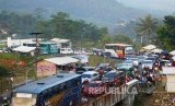Kemacetan arus lalulintas di jalur selatan Jawa Barat (Jabar) saat melintasi tanjakan Gentong, Kecamatan Kadipaten, Kabupaten Tasikmalaya, Sabtu (9/7) sore. (Republika/Fuji E Permana)