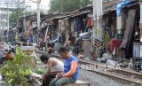 REPUBLIKA.CO.ID, JAKARTA -- Aktivitas warga yang tinggal di gubuk liar di pinggiran rel Kereta Api di kawasan Petamburan, Jakarta, Senin (11/7).