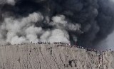 Wisatawan melihat semburan abu vulkanis di tepi kawah Gunung Bromo, Probolinggo, Jawa Timur, Selasa (12/7). (Antara/Ari Bowo Sucipto) (FOTO : Antara/Ari Bowo Sucipto)