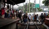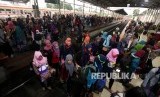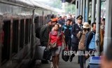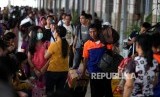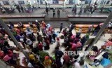 REPUBLIKA.CO.ID, JAKARTA -- Penumpang kereta api arus balik tiba di Stasiun Jatinegara, Jakarta, Selasa (12/7).