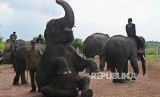 Atraksi gajah ditampilkan saat peresmian Taman Nasional Way Kambas (TNWK) sebagai ASEAN Heritage Park (AHP) ke-36 di TNWK, Lampung Timur, Rabu (27/7).Republika/Edwin Dwi Putranto (FOTO : Republika/Edwin Dwi Putranto)