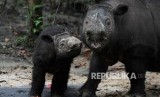 Delilah (kiri) dan Ratu (kanan), dua badak Sumatera betina berada di Suaka Rhino Sumatera (SRS)-Taman Nasional Way Kambas (TNWK) Lampung Timur, Rabu (27/7).Republika/Edwin Dwi Putranto (FOTO : Republika/Edwin Dwi Putranto)