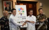 Peluncuran sekaligus serah terima logo baru Asian Games 2018 dilaksanakan di Komplek Istana Negara, Jakarta, Kamis (28/7). Hadir dalam acara peliuncuran, Menpora Imam Nahrawi,Kepala Badan Ekonomi Kreatif Triawan Munaf, Wakil Ketua Umum KOI Mudai Maddang dan Kepala Staf Kepresidenan Teten Masduki.