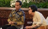 (dari kiri) Presiden Joko Widodo berbincang dengan Menteri Keuangan Sri Mulyani sebelum acara pengarahan Presiden kepada pejabat eselon I, II dan II Ditjen Pajak, Kementerian Keuangan di Istana Negara, Jakarta, Kamis (28/7).(Republika/Wihdan) (FOTO : Republika/ Wihdan)