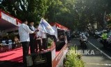 Gubernur Nusa Tenggara Barat M. Zainul Majdi (kedua kiri) melepas peserta pawai Ta’aruf yang menggunakan mobil hias di sepanjang Jalan Pejanggik, Kota Mataram, Nusa Tenggara Barat, Jumat (29/7). (Republika/Raisan Al Farisi) (FOTO : Republika/Raisan Al Farisi)