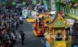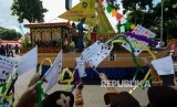 Iring-iringan mobil hias peserta yang berasal dari berbagai provinsi mengikuti pawai Ta’aruf di sepanjang Jalan Pejanggik, Kota Mataram, Nusa Tenggara Barat, Jumat (29/7). (Republika/Raisan Al Farisi) (FOTO : Republika/Raisan Al Farisi)