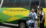 Sejumlah calon jamaah haji kloter 1 Embarkasi Jakarta tiba di Asrama Haji Pondok Gede, Jakarta Timur, Senin (8/8). (FOTO : Yasin Habibie/Republika)