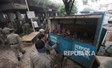Petugas gabungan dikerahkan untuk membongkar pemukiman dan sejumlah bangunan semi permanen yang menempati lahan di Kolong Tol Warakas, Kelurahan Warakas, Jakarta Utara, Kamis (11/8). (Republika/Rakhmawaty La'lang) (FOTO : Republika/Rakhmawaty La'lang)