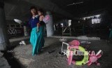 Warga beraktifitas di bangunan semi permanen miliknya jelang pelksanaan penertiban lahan di Kolong Tol Warakas, Kelurahan Warakas, Jakarta Utara, Kamis (11/8). (Republika/Rakhmawaty La'lang) (FOTO : Republika/Rakhmawaty La'lang)