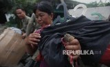 Warga menyelamatkan hewan peliaraannya saat berlangsungnya penertiban bangunan liar di Kolong Tol Warakas, Kelurahan Warakas, Jakarta Utara, Kamis (11/8). (Republika/Rakhmawaty La'lang) (FOTO : Republika/Rakhmawaty La'lang)