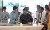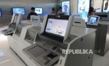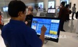 Pengunjung menggunakan fasilitas Outlet BRi Digital usai peresmian di Terminal 3 Ultimate Bandara Soekarno-Hatta, Banten, Senin (15/8). (FOTO : Republika/ Wihdan)