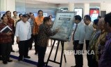 Wakil Presiden Jusuf Kalla (tengah kiri) didampingi Direktur Utama BRI Asmawi Syam (kanan tengah) saat meninjau Outlet BRi Digital di Terminal 3 Ultimate Bandara Soekarno-Hatta, Banten, Senin (15/8). (FOTO : Republika/ Wihdan)