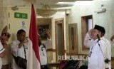 REPUBLIKA.CO.ID, Para Petugas dari Panitia Penyelenggara Ibadah Haji (PPIH) di Arab Saudi menggelar upacara HUT RI ke-71 diberbagai tempat. Tidak terkecuali di kota suci madinah. Walaupun sederhana namun tidak mengurangi kekhidmatan suasana upacara.