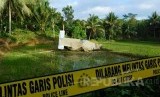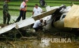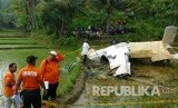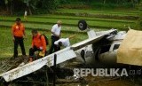 Petugas mengamankan lokasi jatuhnya pesawat. (foto: Fuji EP) (FOTO : Fuji EP/Republika )