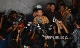 Gubernur DKI Jakarta Basuki Tjahaja Purnama atau Ahok dimintai keterangan oleh awak media seusai mengikuti sidang perdana di Gedung Mahkamah Konstitusi (MK), Jakarta, Senin (22/8). (Republika/Raisan Al Farisi) (FOTO : Republika/Raisan Al Farisi)