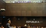 Ketua KPAI Asrorun Niam Sholeh memberikan keterangan di depan majelis hakim konstitusi pada sidang lanjutan judicial riview KUHP pasal 284, 285, dan 292 di Mahkamah Konstitusi, Jakarta, Selasa (23/8). (FOTO : Republika/ Wihdan)