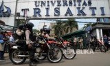 Anggota Polda Metro Jaya berjaga di depan Kampus Trisakti, Jakarta, Rabu (24/8). (FOTO : Republika/ Yasin Habibi)