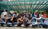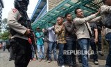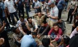Anggota Polda Metro Jaya menangkap sejumlah orang yang diduga anggota preman di Kampus Trisakti, Jakarta, Rabu (24/8). (FOTO : Republika/ Yasin Habibi)
