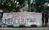 Kelompok yang mengatasnamakan rakyat miskin kota Jakarta melakukan aksi di depan Kantor Dewan Perwakilan Pusat PDI Perjuangan di Jalan Diponegoro, Jakarta Pusat, Kamis (25/8). (FOTO : Republika/ Raisan Al Farisi)